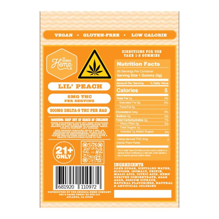 THC Gummies • 5mg THC • Lil’ Peach • 60ct